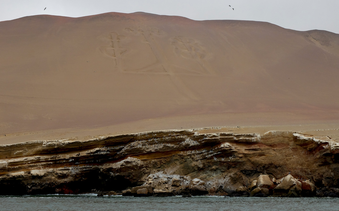 Rannalla laiturin edessä mistä veneet saarille lähtevät oli sankoin joukoin ihmisiä. Vaikka olimme ajoissa hankkineet liput, jouduimme silti odottamaan tunnin vuoroamme ennen kuin pääsimme veneelle. Vene ajoi Paracasin niemimaan vierustaa ja pysähtyi hetkeksi Candelabran kohdalle. Se on 180 metriä korkea rannalle maahan kaivettu kuvio, jota kutsutaan Candelabraksi eli ”kyntteliköksi”. Mereltä sen voi nähdä yli 20 kilometrin päästä. Sen tarkoitusta tai tarkkaa ikää sekä tekijöitä ei tiedetä. Eräs teoria on, että se esittää Viracochan ukkos-sauvaa, tämä alkuperäisasukkaiden jumala on ollut tärkeä monissa eteläamerikkalaisissa kulttuureissa. Kuten se oli myös valloittaja Inkoillekin, luomisjumala joka nousi Titicaca järven vedestä. Arvellaan että Paracas kulttuurin ihmiset ovat sen luoneet noin 200 ennen ajanlaskun alkua.