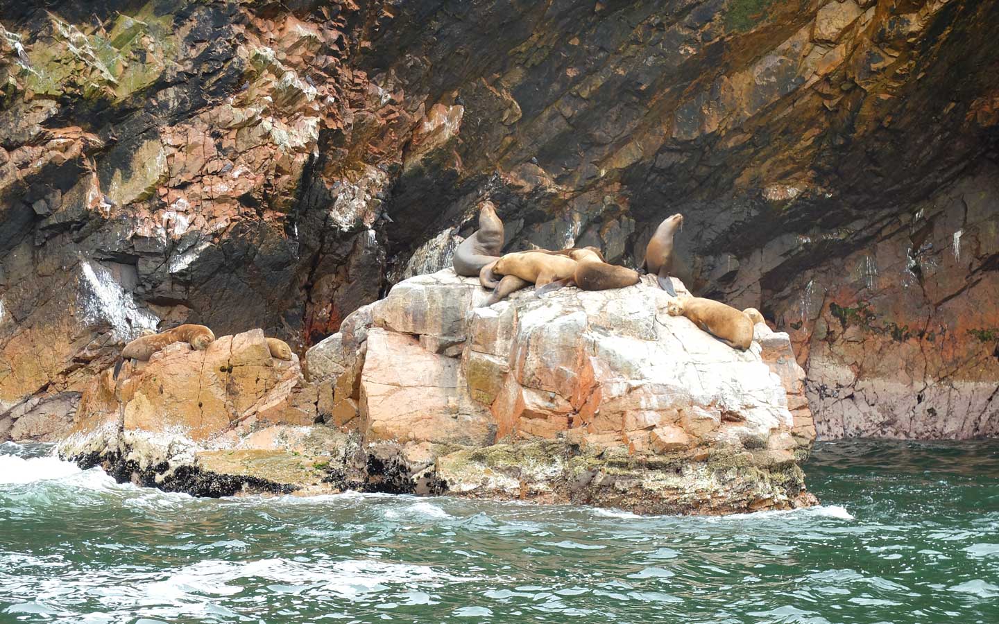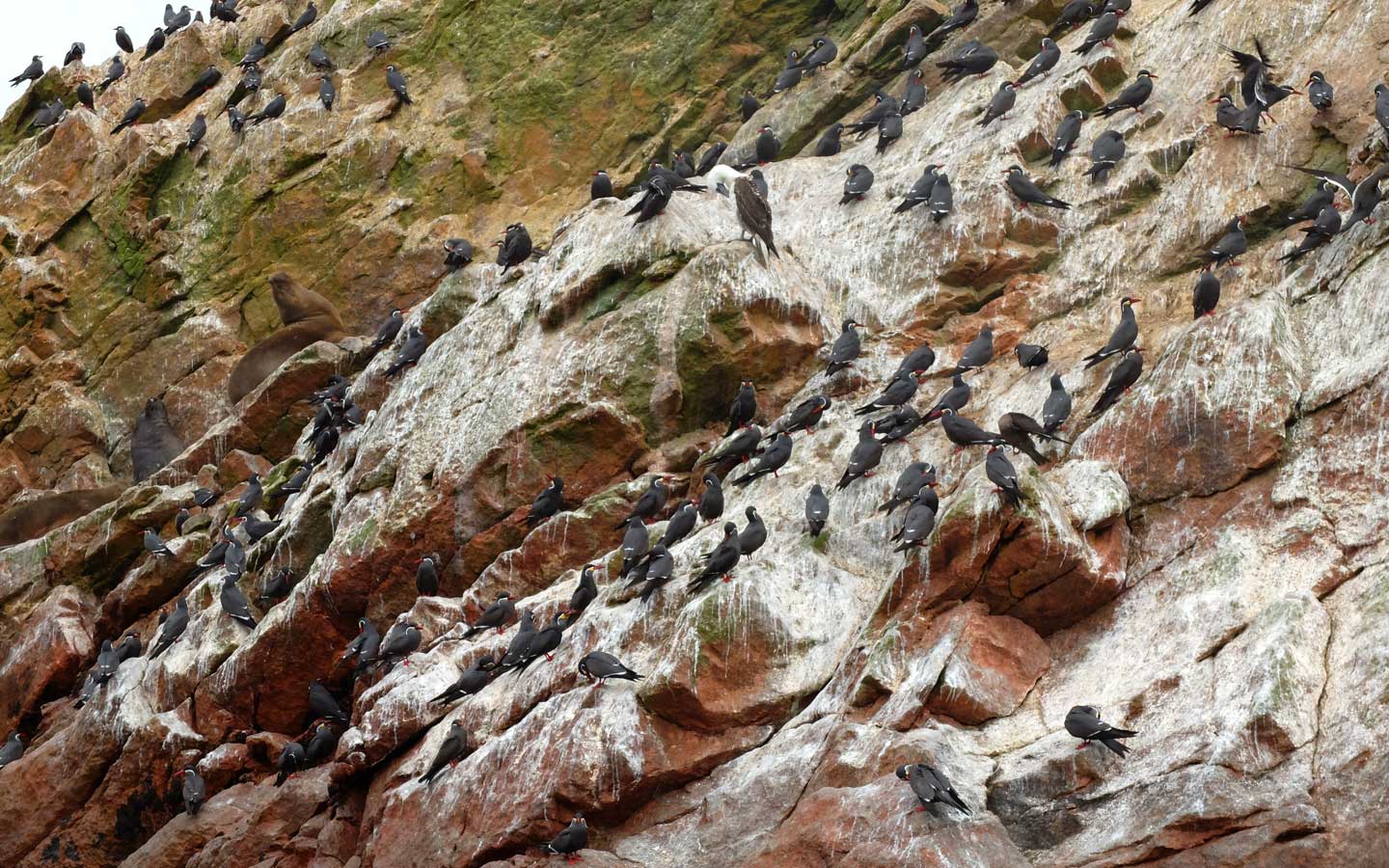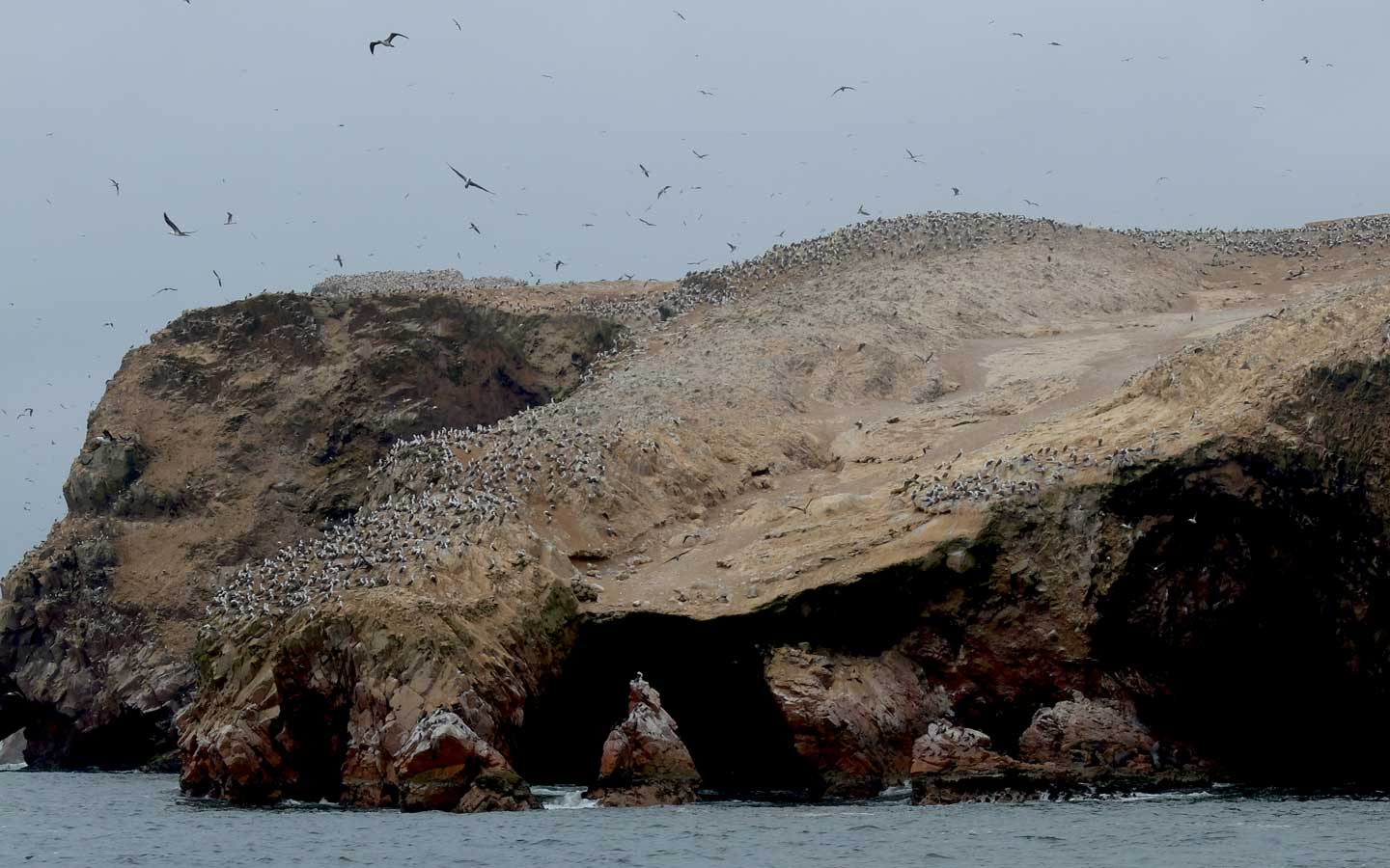 Vielä tunti veneessä ja sitten saavuimme saarille. Ilma oli sakeana kirkuvia lintuja ja valkoisena hohtavat saartenlaet mustanaan lintuja. Islas Ballestas on kolmen pääsaaren ja useiden pienien saarien rykelmä avomerellä noin 23 kilometriä rannikolta. Saaria on peittänyt jopa 70 metriä paksu guano eli meri lintujen ulostekerros. Se sisältää paljon fosforia ja typpeä sen käyttö lannoitteissa ja räjähteissä keksittiin 1840-luvulla. Saarilta kerätty guano oli Perulle tärkeä vientituote, maailmalla sitä käytettiin yleisesti lannoitteena ja ruudin valmistuksessa. Saarien läheisyydessä merellä voi ilmassa aistia voimakkaasti tuoksuvan guanon hajun. Nykyään guanoa kerätään ainoastaan yhden viikon vuodessa. Nyt saaret ovat tärkeä merieläinten suojelualue, merilintuja on yhteensä 18 eri lajia. Myös Humboltin pingviinejä tavataan saarilla, sekä merileijonien yhdyskunta, arviolta noin 2500 yksilöä jotka kasvavat noin 300 kilon painoisiksi. Saarien muita nisäkkäitä ovat merisaukot ja delfiinit joita tavataan 30 lajia.